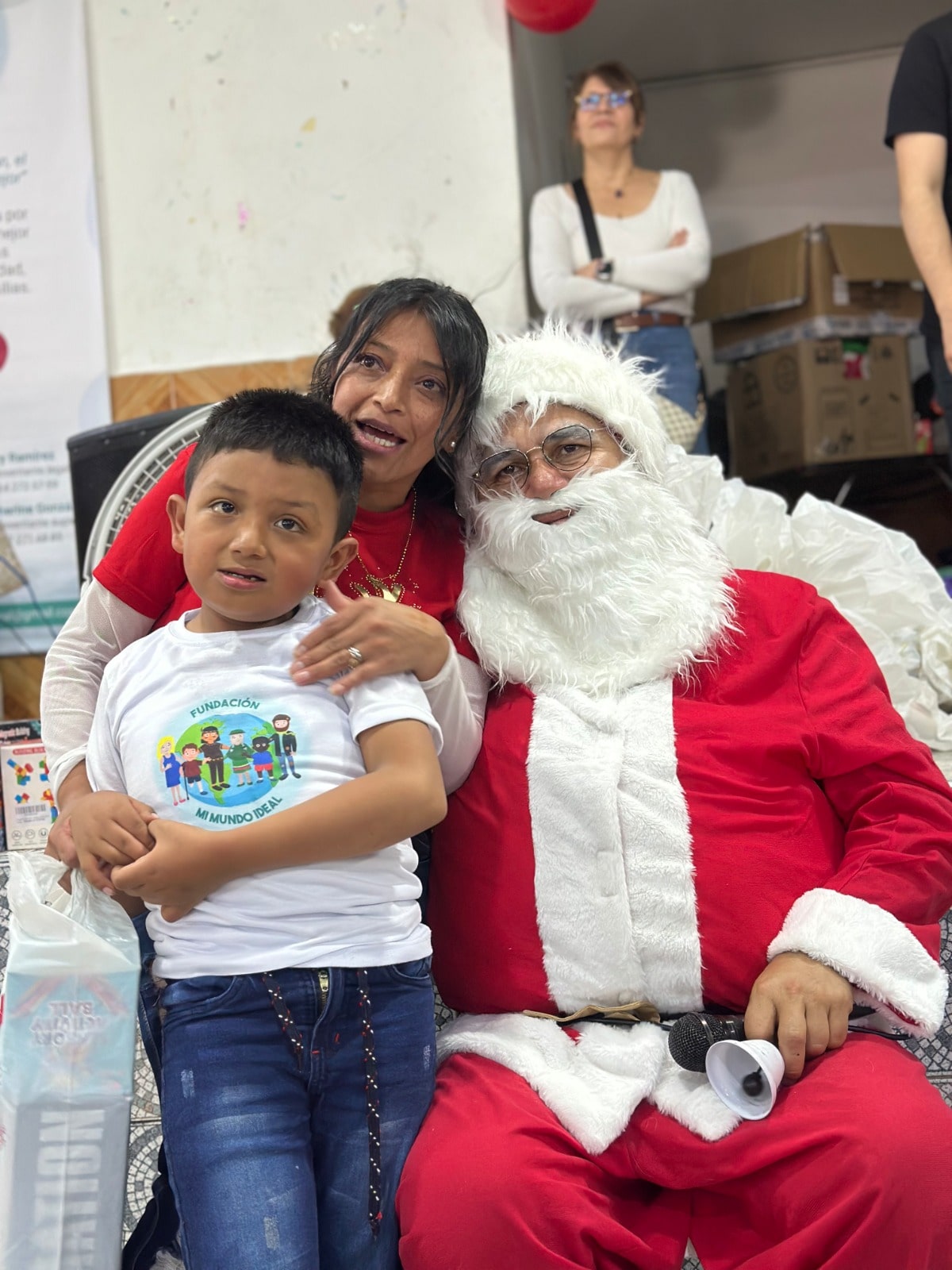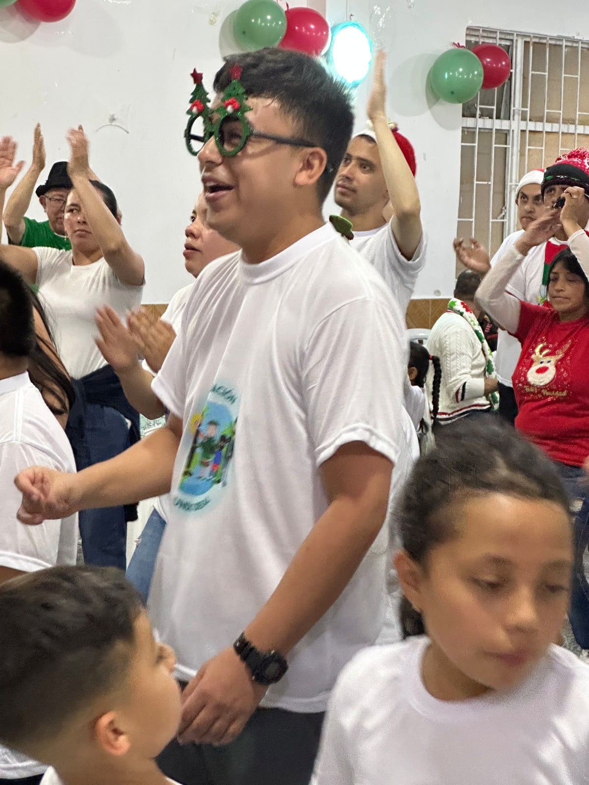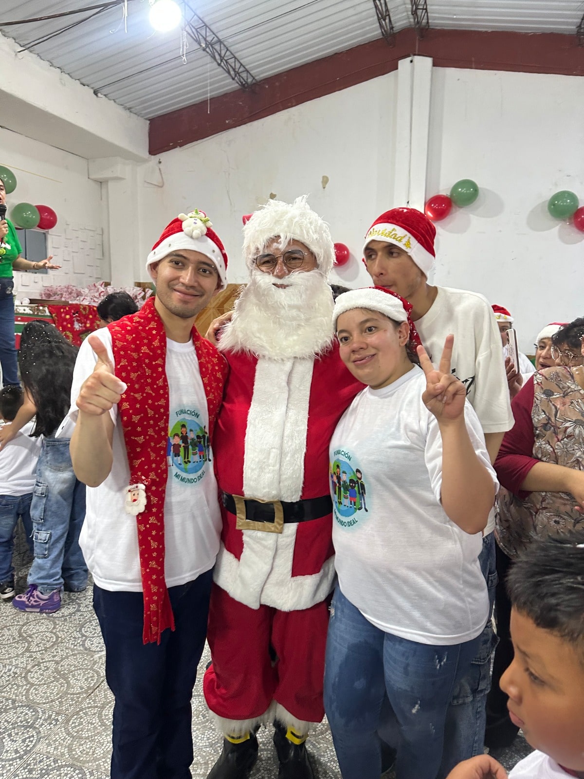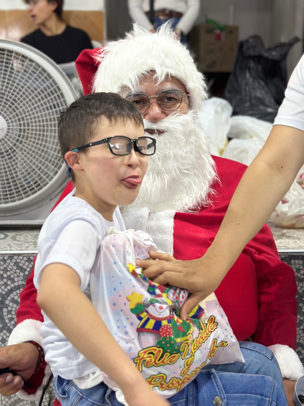 Tuvimos la bendición de llevar luz, amor, alegría y RUMBA con esta celebración navideña. Entregamos regalos, dulces y un minimercado por niño(a) (fueron en total 71 y a los que no pudieron asistir se los enviamos). Hubo refrigerios, baile y rifas. Los chicos(as) amaron la visita de Papá Noel y estuvieron felices posando con él.