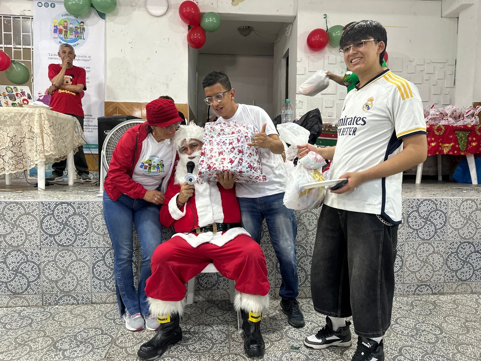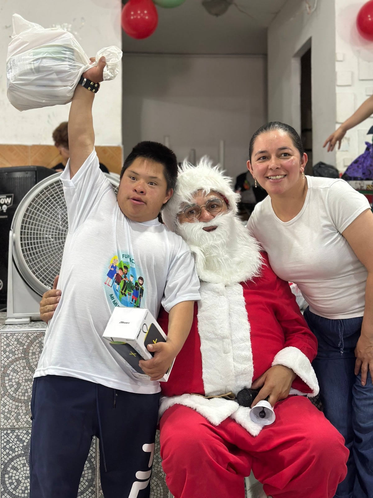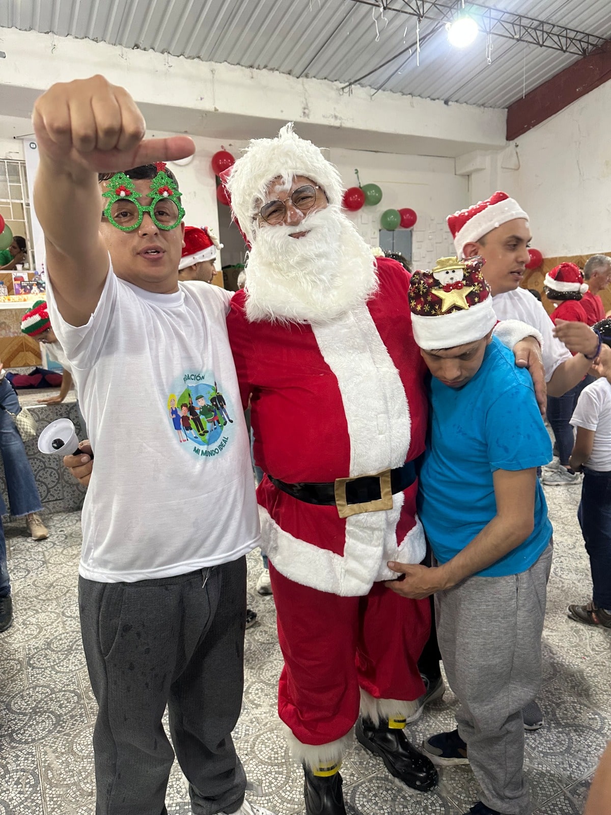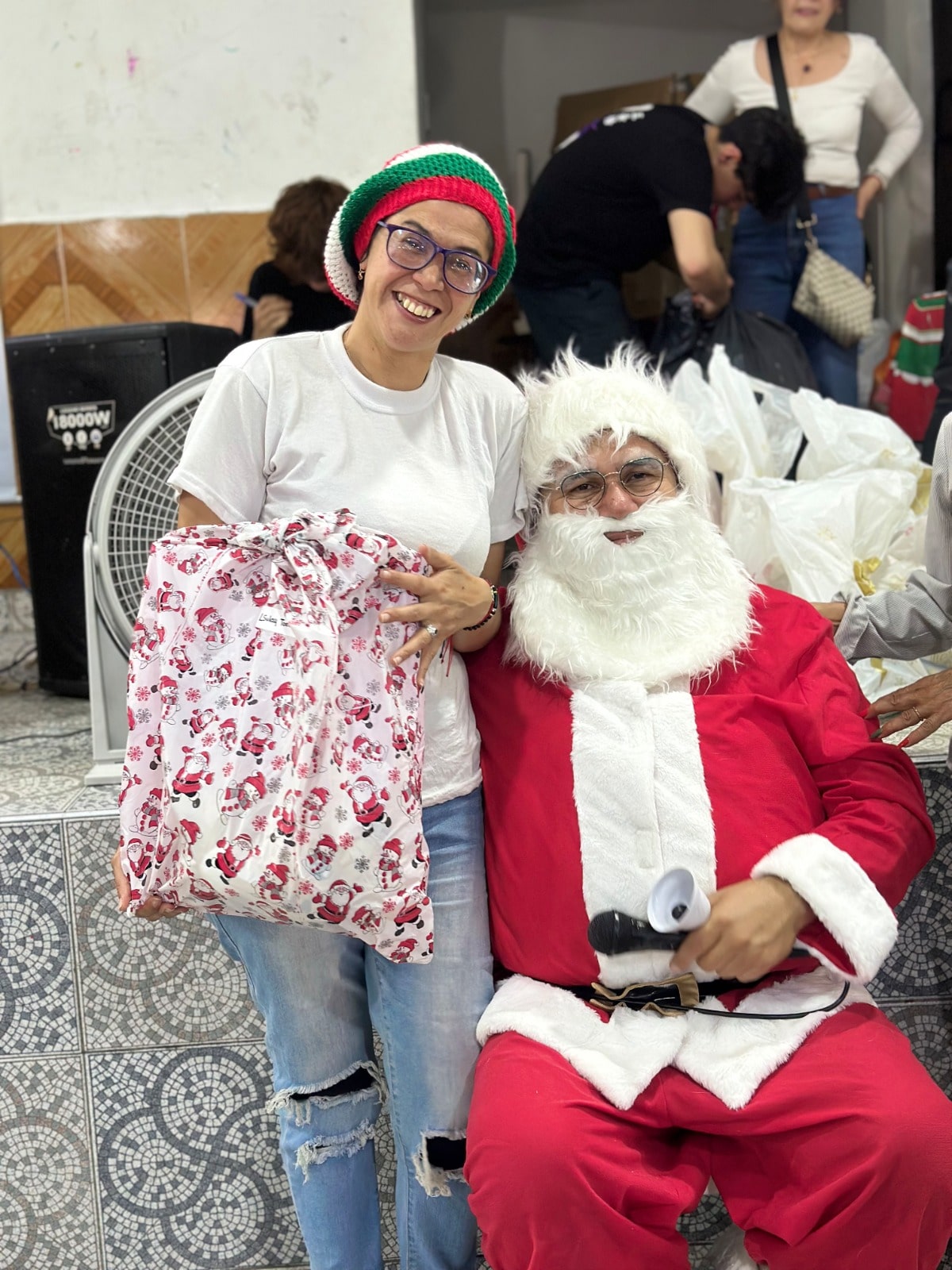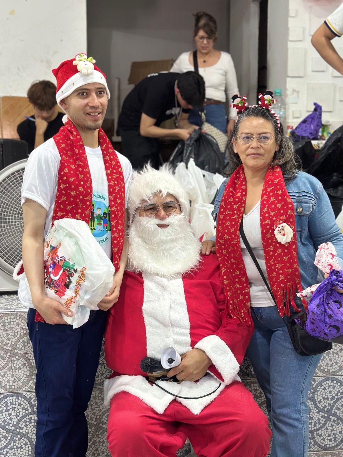 Tuvimos la bendición de llevar luz, amor, alegría y RUMBA con esta celebración navideña. Entregamos regalos, dulces y un minimercado por niño(a) (fueron en total 71 y a los que no pudieron asistir se los enviamos). Hubo refrigerios, baile y rifas. Los chicos(as) amaron la visita de Papá Noel y estuvieron felices posando con él.